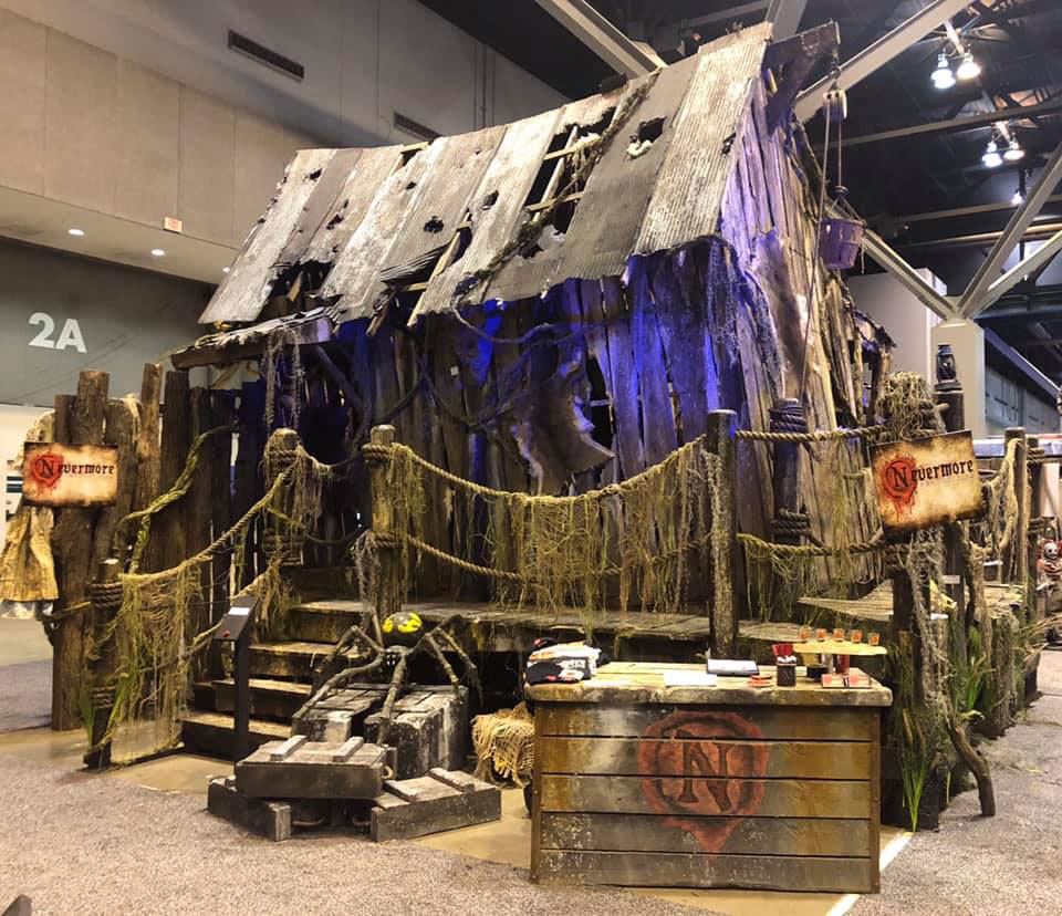 Footprint is 24ft x 20ft. 20ft tall. Size and layout can be customized to suit your space. Stairs, platforms, wooden posts and rope handrails all come included. Foliage and props not included. Walkways come standard as static, non-moving, but can be upgraded to a dropping bridge and suspension bridge for an upcharge.
