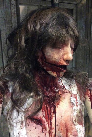 This show stopping piece will amaze and disgust your guests at the same time. The dismembered body parts are crudely linked together to form a life size puppet only a fiendish psychotic killer would love. Every inch of this prop is covered with gory detail, so realistic it will make even the bravest haunt goers wonder who, or what, could create such a monstrosity. 6 independent articulated movements bring this prop to life. (NOTE: can be finished with chest not exposed for slightly more family friendly events).