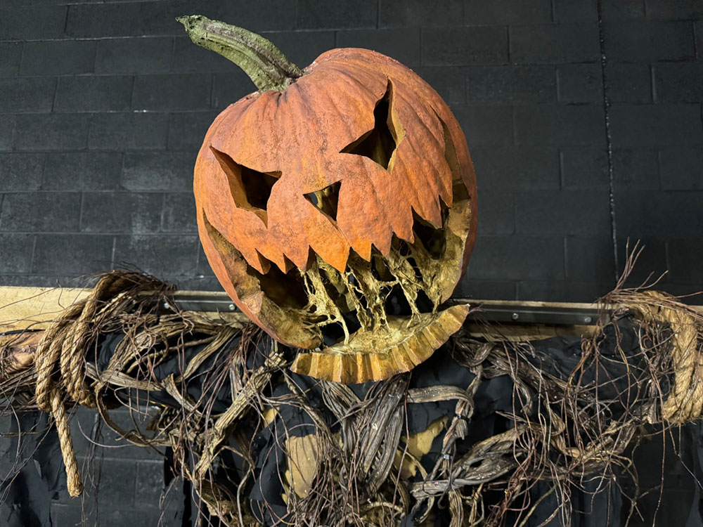 What’s more iconic than a creepy pumpkin head scarecrow??? This guy is dripping with that classic vibe, right down to the last detail. Layers of distressed fabric, synthetic vines, and that classic jack-o-lantern grin bring him to life. A great addition to any outdoor scene, pumpkin patch, or even a photo op scare!