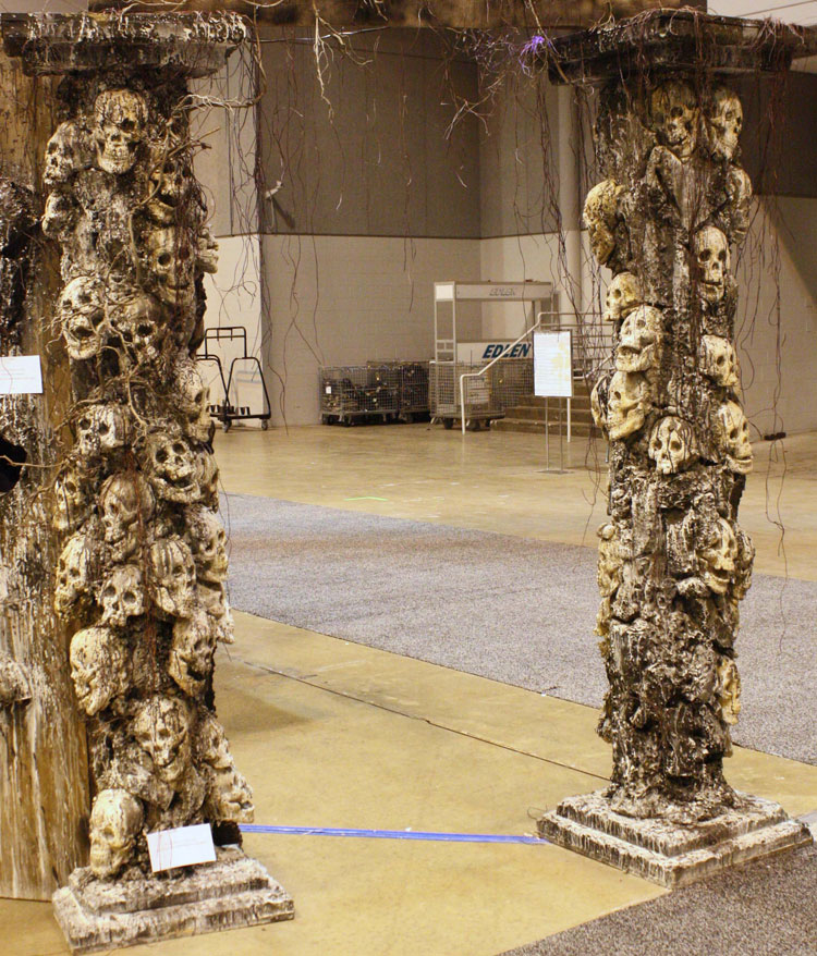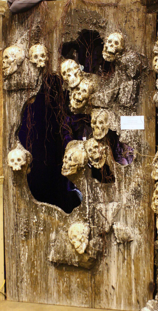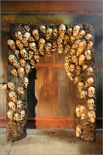 Add this Gothic piece of skull architecture to any cemetery and take your scene to the next level. Skulls stacked haphazardly on top of each other make up the gruesome building blocks for this set piece.