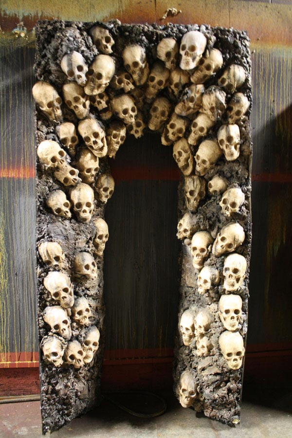 This beautiful entrance piece would make the perfect doorway into any cave, catacomb, crypt or even a spectacular halloween party! completely handcrafted, no 2 are the same. weather resistant and durable, this piece will give your guests something to talk about for years to come. 4x8and roughly 16 inches deep.