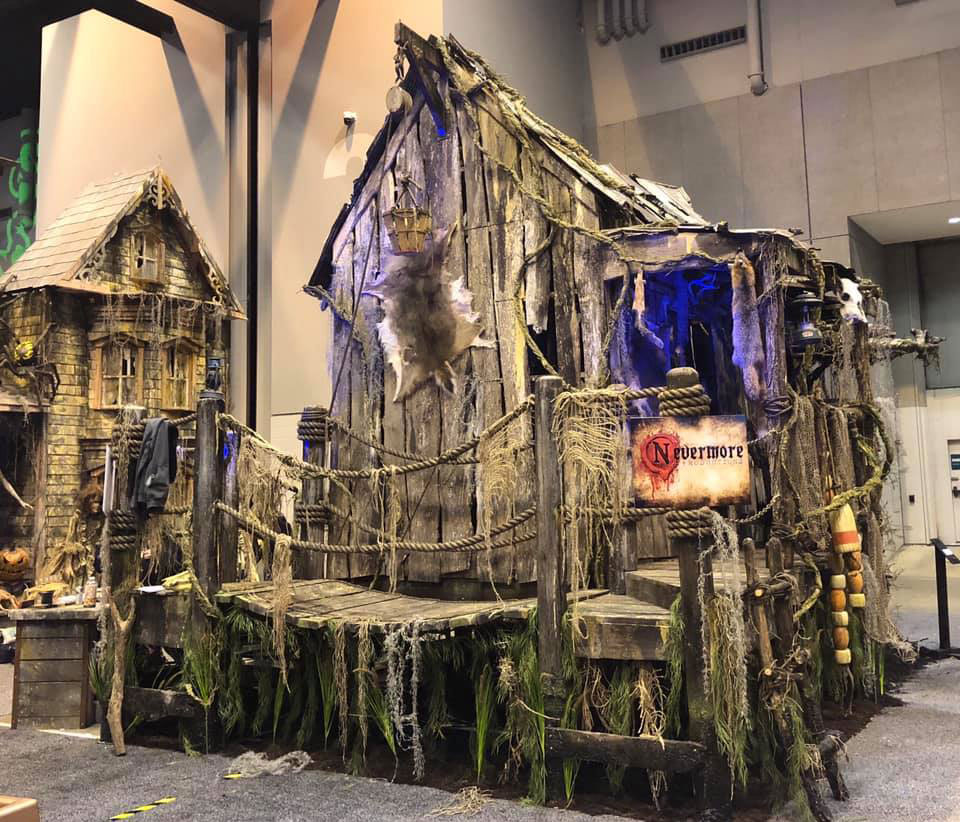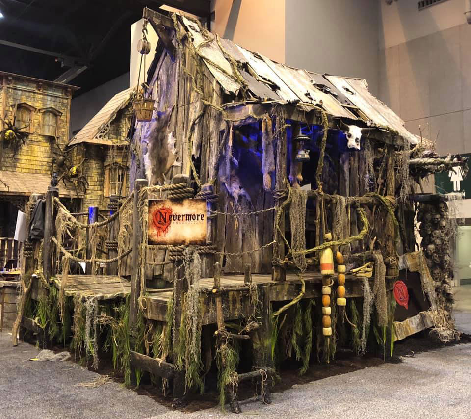 Footprint is 24ft x 20ft. 20ft tall. Size and layout can be customized to suit your space. Stairs, platforms, wooden posts and rope handrails all come included. Foliage and props not included. Walkways come standard as static, non-moving, but can be upgraded to a dropping bridge and suspension bridge for an upcharge.