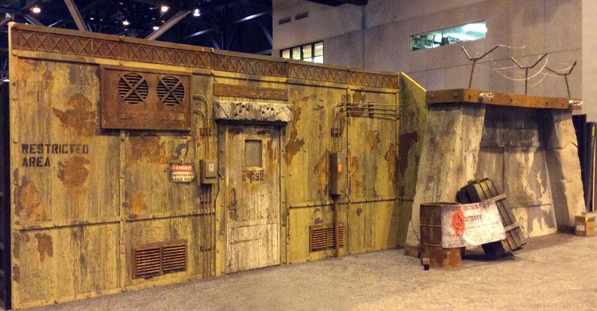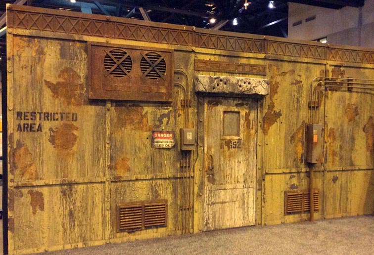 Trying to create a believable back story for your zombie outbreak? Look no further! It all starts here, deep within an underground testing facility, bio- weapons are being produced with black market chemicals, capable of releasing the most devastating plague known to man. Or…something like that! You decide what these walls are containing and we’ll do the rest. This is a two part façade, that can be purchased individually or together.